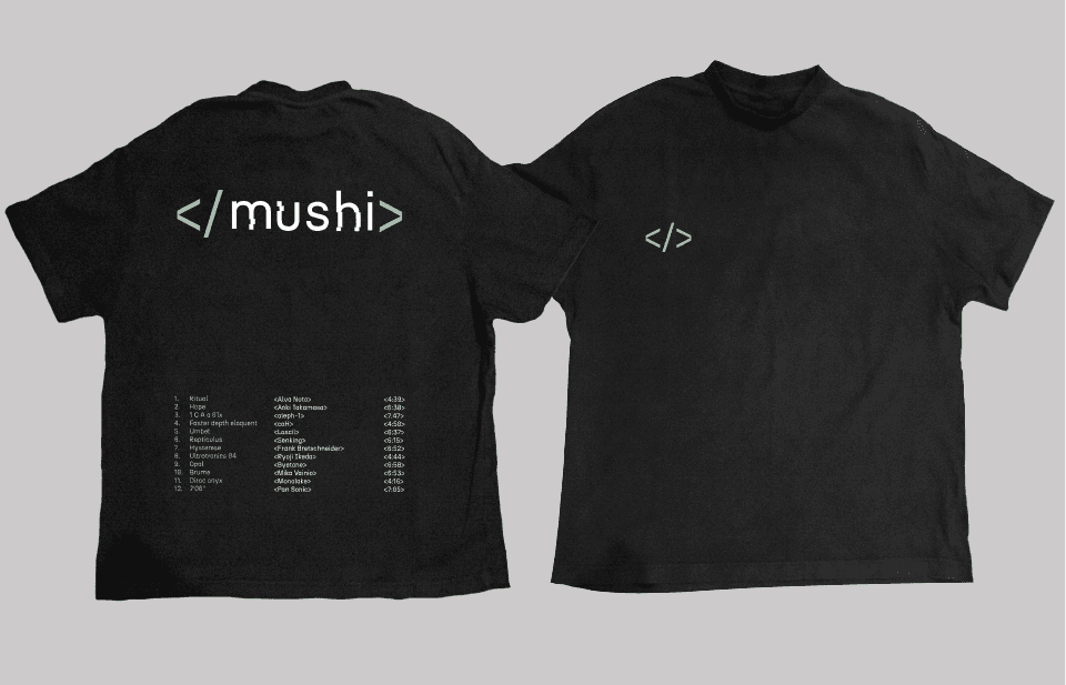 Born from the idea of finding a pattern, a pattern in the sound productions of great artists and wanting to recover their (mathematical!) values in an audiovisual representation, MUSHI aims to immerse visitors in an experience in which they interact intimately with the works presented through the Silent Party formula.